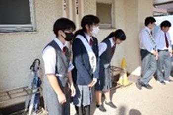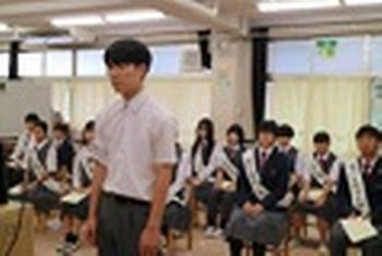 地域の方にもご来校いただき、先日の英語スピーチコンテストの2名の生徒の受賞について、お祝いとニューヨーク派遣に向けての励ましのお言葉をいただきました。