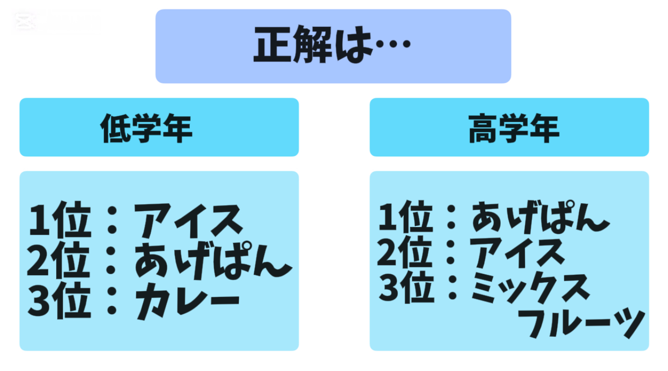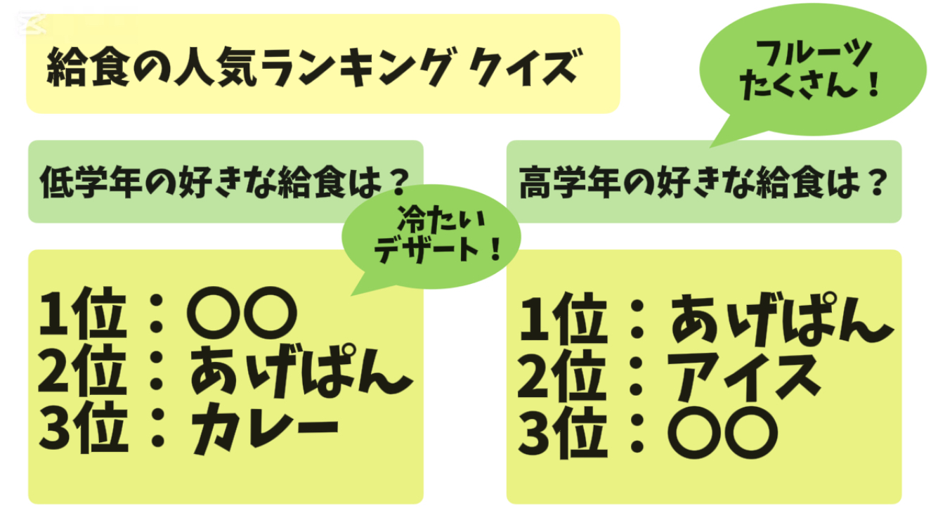 低学年・高学年に分けて、給食の人気ランキングをアンケートしました!