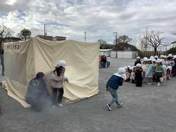 今回は火災を想定した避難訓練を行ったあと、戸塚消防署の方々にご協力いただき、2・3年生の皆さんが煙体験をしました。火災が起こった際には口にハンカチをあて低い姿勢で移動し、煙を吸わないことが大事だと学びました。
