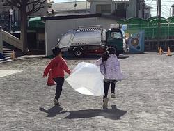 生活科では、ペアで大きなふくろを持ち、たくさんの風を袋の中に集めました。順番を待っている時には、「袋を持っているだけで風が集まってくる!」と嬉しそうな表情をうかべていました。まだまだ校庭で力いっぱい走りたい様子でした。「かぜであそぼう」まだまだ続きます。
