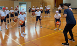 前半はドリブルやシュートのコツを教えてもらい、後半は「コーチ+教師チーム」と試合をしました。みんなとても楽しそうに活動に取り組んでいました。