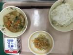 麦ごはん 牛乳 かつおのごまみそあえ けんちん汁