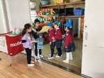 国語の学習をいかして、中野幼稚園の年長さん桜井小学校のことを紹介しました。「これは、黒板消しクリーナーです。掃除のときに使います。横にスイッチが付いていて、押すと大きな音が鳴ります。」など、学習で使うものや学校のことなどを詳しく分かりやすく説明していました。校内を巡るときには、手をしっかりとつなぎ「ゆっくりでいいよ。」と優しく声をかける姿が見られました。お見送りのときには「また来てね。」と、バスが見えなくなるまで手を振るなど、春から2年生となる準備がしっかりできているように感じました。