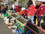 2年生が育ててきた冬野菜のかぶを収穫しました。保護者の方の協力をいただき、採れたかぶを包丁で切り、ホットプレートで焼いて試食しました。子どもたちは種からまき、みんなで草むしりや水やり、カラス対策をした末に収穫できたことに達成感を得ていました。また、この学習を通して、収穫することの喜びを感じ、自分たちが育てたかぶの美味しさを知って、「かぶが好きになった」という子どももいました。