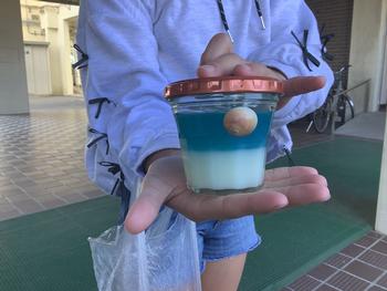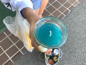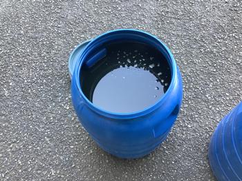 全校に呼びかけて集めた廃油約90リットルを、株式会社共創の河原さんに引き渡しました。