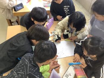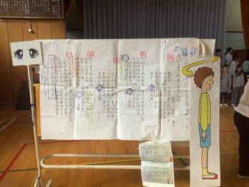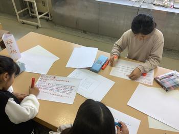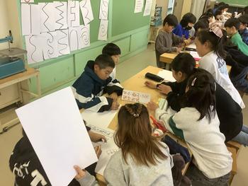 いろんな人に見てもらう前に、クラス内で発表会をして自信を深め、アドバイスしあいました。