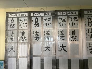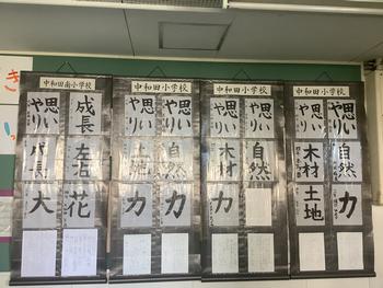 職員室前の廊下を通る子どもたちも、整った文字に足を止めていました。