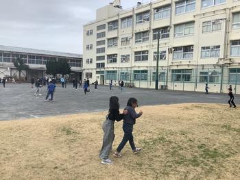 寒くても、たくさんの子が校庭に出て遊んでいました。