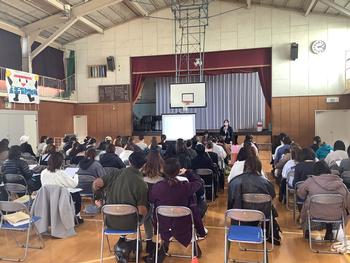 息のあった演奏と、力強くそして優しい歌に、体育館はやわらかい雰囲気に包まれていきました。
