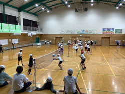 体育では、ソフトバレーボールをしました。2クラスずつに分かれ、学習を進めてきました。