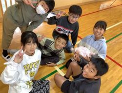 たてわり活動の一つ「たてわりニコニコ遊び」です。グループごとに遊ぶ期間が年間3回あります。交流することを通して、グループで協力することの楽しさや仲間意識を高めることが目的です。たてわり活動は、その他に「集会」「ペア学年遊び」があります。
