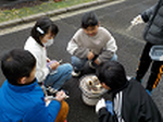 3年生が社会科「昔の道具調べ」の学習で、七輪を使って餅を焼く体験をしました。