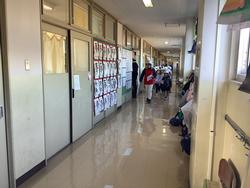 本校では人権週間に福祉への理解を深める学習の一環として、盲導犬とユーザーの方、盲導犬協会の方をお招きして視覚障がい者の生活や盲導犬の役割について学ぶ学習を行いました。体育館で低学年と高学年に分かれて実施しました。スライドを使って盲導犬の仕事や関わる際のルールについて学び、子どもたちは「盲導犬は目の不自由な方を安全に導く大切なパートナーであること」「仕事中の盲導犬には声をかけないこと」など基本的な知識をしっかり身につけることができました。スライドでの学習後は実際に盲導犬とユーザーの方がカラーコーンを避けながら歩行する様子も見学しました。子どもたちは盲導犬が指示に従いながらも自分で最適なルートを考えて、安全に歩行をサポートする姿に驚き、感動していました。この学習を通して、福祉への理解を深めるとともに思いやりの心や社会で支え合う大切さを実感することができました。今後もこうした体験を通じて誰もが安心して暮らせる社会について考える機会を大切にしていきたいと思います。 土砂災害警報発令時を想定して4階に垂直避難する訓練を実施しました。本校給食室側が土砂災害警戒地域のため、本校にとってはとても大切な訓練です。1階部分が危険個所に当たるため通常本部は職員室や校庭に設置することが多いのですが、今回は本部をパソコン室に設置しました。子どもたちは「お・か・し・も」を守って落ち着いて避難することができ、とても真剣に取り組んでいました。訓練のまとめとして、校長から日頃よりハザードマップで自宅や周辺地域にどのような危険が潜んでいるのか確認しておくことの大切さについての話がありました。 4年生が算数の垂直と平行の単元の学習をしていました。対角線の意味と様々な四角形の対角線の特徴を理解する内容です。子どもたちは対角線を引いて形の変化や交わる点に注目していました。とても集中して学習をすすめていました。 今日は九九の「八の段」に挑戦しました。これから子どもたちは声をそろえて元気に唱えリズムに乗って覚えていきます。ゲームやペア練習を通して楽しみながら確実に覚え九九名人をめざしてがんばってほしいです。 今日は「計算ピラミッド」に挑戦しました。下の段の数字を使って、上の段の答えを考える問題です。子どもたちは一つひとつ丁寧に計算していました。ピラミッドが完成すると「やった!」と笑顔が広がり、達成感いっぱいの様子でした。楽しみながら計算力を伸ばすことができました。 6年生が一人ひとり異なる献立を考え調理実習を行いました。同じ献立を一斉に作る活動のように、指導者が全体を把握しながら一斉指示を出すことはできないため、子どもたちは自力解決しなければなりません。そのような中、子どもたちはとても意欲的に調理していて、とても頼もしく思いました。地域ボランティアの方が3名来校してくださり、子どもたち一人ひとりに寄り添って、調理のコツを教えていただきました。完成した料理の味は格別だったようです。地域の方々との温かい交流もあって、忘れられない思い出になりました。 5年生が、黄金色に実ったバケツ稲をハサミで丁寧に刈り取り、収穫しました。食べ物の大切さや農家の方の苦労を学ぶ、貴重な体験になりました。刈り取った稲は束ねて、風通しのよい場所で干すそうです。 本日の朝会は各教室でテレビとタブレットを接続しオンラインで行いました。2年生の教室にタブレットの親機を設置しました。発表者が2年生教室に集まり黒板を背景に撮影を行って発信したので、教室が放送局のような雰囲気になりました。内容は人権週間についての話、2年生、3・4組の発表、飼育委員会からのお知らせ、今月の目標についてでした。インフルエンザやコロナが流行した際に集合せずに朝会を行う方法として練習する良い機会となりました。 すべての学年がこれまでに学習したことを限られた時間にまとめ立派に発表することができました。 1年生「まねっこ たいそう くじらぐも」 2年生「およぐぞ!スイミー」 3年生「かいこくんの大ぼうけん」 4年生「野菜の皮で変身!素敵な魔法!野菜染め」 5年生「みんなに伝えたい!災害の危険性と備え」 6年生「何があった?謎を巡る!27人の歴史劇!」 1年生は国語で学んだ「くじらぐも」を音楽劇にして、空をとぶ楽しさや友だちとのつながりを元気いっぱいに表現しました。2年生は「スイミー」を通して、協力することの大切さを力強い群読で伝えました。3年生はかいこを育てた経験を生かし、かいこの一生についてまとめたことを伝えました。4年生は、野菜の皮を使った染物について自分たちが取り組んだことを紹介しました。5年生は防災学習をもとに、災害への備えの大切さを分かりやすく発表しました。そして6年生は小学校生活最後の上フェスにふさわしく、歴史の「謎」を探偵団が解き明かすという工夫された劇で、「昔があるから今がある」というメッ