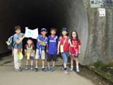 トンネルの前で  少し疲れたかな?  いやー水かけないで  ああー楽しかった!