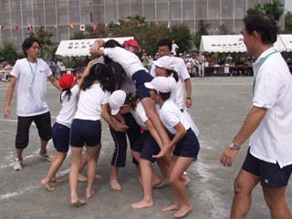 | − ラ ス ト 運 動 会 − 校長 椿 依 都 代 同じ人なのに、今日はいつにも増して美しくすてきに輝いている!!霧二小の運動会でこの思いをさらに強くもったのは私だけだったでしょうか。そして、感動の高まりが会が進むにつれどんどん身体中に駆け回っていくのを実感したのは、‥‥‥。 2005年9月23日、近づく台風に"待った"をかけ、昨日までの天気がうそのように晴れ上がった中、霧二小最後の記念すべき運動会が挙行されました。霧一小から三小、そして、本校の児童へと引き継がれた統合の火は24年間の歴史を彩ってくれた卒業生・保護者の代表の手を経て、再び6年の代表児童にわたり霧二小のランプに点火されました。この瞬間、私は、歴史的な1ページに身を置くことのできた幸せを感じるとともに霧二小の子どもたちにとっても達成感と充実感をもって、いつまでも心の中に点火し続けるだろうと確信しました。そして、確信は本物になりました。 本年度のテーマは「ラストかがやけ霧二パワーで勝利をめざせ!!」。このテーマのもと、練習の時から、子どもたちも教職員もひとりひとりがそして学校全体が燃えました。私自身はといいますと"できるだけ子どもたちの体温の感じるところにいて共にかがやきたい"と実行しました。さて、昨年もよかったのですが、今年のさらなるパワーアップの源はなんだったのでしょうか。 第一のキーワードは「いっしょうけんめい」ではないかと思いました。 1年生の堂々としたはじめのことばの中にも"いっしょうけんめいに"とあったのをご存知だと思います。1年生は、当日このことばが合言葉で朝の会からしっかり胸に沁みこませ、クラス全体でテーマに向けてがんばるための原動力としていました。もちろん、口には出さずとも他学年の様子に"いっしょうけんめい"があふれていたのはいうまでもありません。いっしょうけんめいに人と自分自身と勝負するからこそ真の心地よさや悔しさを感じることができたと思います。"いっしょうけんめいさ"は感動のうねりとなって会場全体を包んでくれました。 第二のキーワードは「創る」 今年の運動会も先生たちの指導のもと、テーマの決定、開閉会式、競技、演技等6年生を中心に自分たちで創り上げたものが随所で光っていました。特に、たてわりなかよし班活動の表現の場となっていたのではないかと思います。ですから、工夫と協力・助け合いがより以上に発揮されていました。キャタピラ競技の場面では各チームが混戦したりしてちょっとびっくりもしました。"私もやってみたかった、全校たてわりダンスももっと踊っていたかった!" 第三のキーワードそれは「ふれあい」 本校の教育活動の特色のひとつに、たてわりなかよし班活動を中心とした"ふれ合い"を大切にしていることがあります。そこで先にもふれましたが、競技や演技の中に人とのかかわりあいを意図的に取り入れよう配慮しました。ですからどのように工夫して勝利に向かうのか、どうしたら満足のいく演技ができるのか各チーム毎に切磋琢磨している子どもたちの様子が見て取れました。職員のTシャツに描かれたチームのデザイン画は子どもたちへの応援歌といえます。また、小規模校ならではの低中高のブロック毎の取り組みに加え、保護者・地域の方・卒業生参加の競技や緑区音頭、そして東洋英和女学院大学の演技等によって運動会が大いに盛り上がりました。特に"(霧が丘)ロックソーラン"では、アンコールに地域の方々が快く参加してくださったこと(連合会長様にもあいさつをいただきました。)も大きなふれあいの喜びでした。さらに、本年度は、霧一・三小の子どもたちや先生方、中学生の皆さんが多数参加してくださいました。多くの方々に支えられ、応援いただき感謝・感謝!!です。 第四のキーワードそれは「挑戦とていねい」 運動に対しても、人にはそれぞれ得意・不得意・はずかしさがあったりします。でも、こうしたことに挑戦できるのが運動会、しかも前文で述べたように安心できる人間関係の中で新たな挑戦が見られました。たとえば、応援団、リレー、合奏団、開閉会式や係の役割、赤組・白組それぞれ勝利に向けての限界への挑戦等々。1〜3年生の"よさこいソーラン"も、昨年度の低学年の演技をぜひ!という保護者の皆様の要望から生まれた挑戦でした。練習の時から挑戦者たちは、日に日に自信をもち堂々としていきました。それは、ていねいに取り組む指導と練習があったからでしょう。当日のひとりひとりの子どもたちの様子はいかがでしたか。もちろん、反省点や課題はありますので、これからも努力です。 第五のキーワードは、やはり「ラスト!!」でしょう。 このことに関しては、6年生の代表者が閉会のことばにしっかりと述べてくれていましたので、ここでは書かないことにしましょう。ただ、"ラストかがやいた運動会であった事実"と"ラストは始まりの一歩である"ことを記して‥‥‥。 少し長くなりましたが、