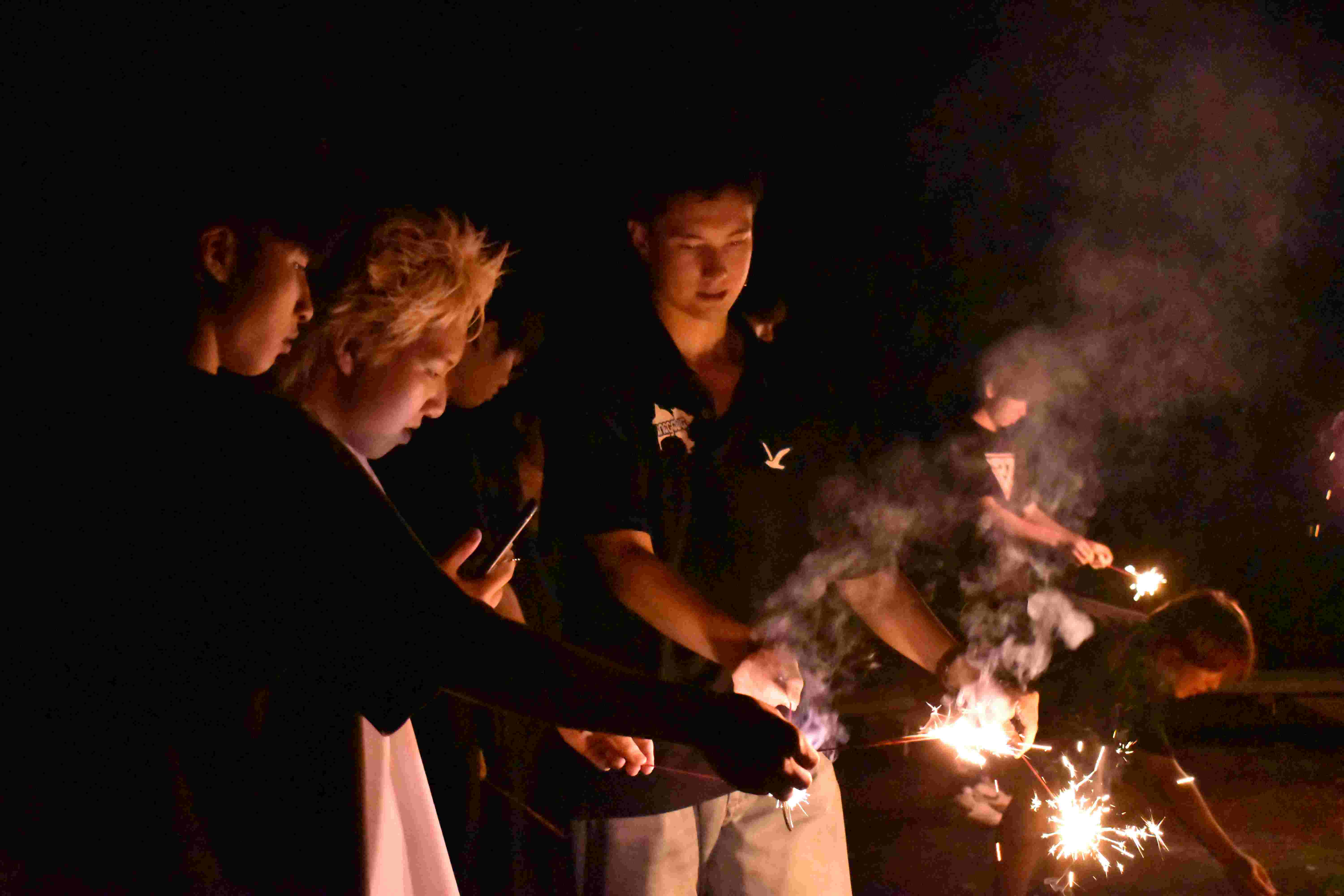 1日目はよこはまユースから講師を招き、無人島での道具選びを題材に、全員で合意形成に向かう体験をしました。野外炊事やキャンプファイヤーでは役割を分担したり周りを見て率先して動いたりする様子が見られ、学年を超えて協力しながら交流を深めることができました。