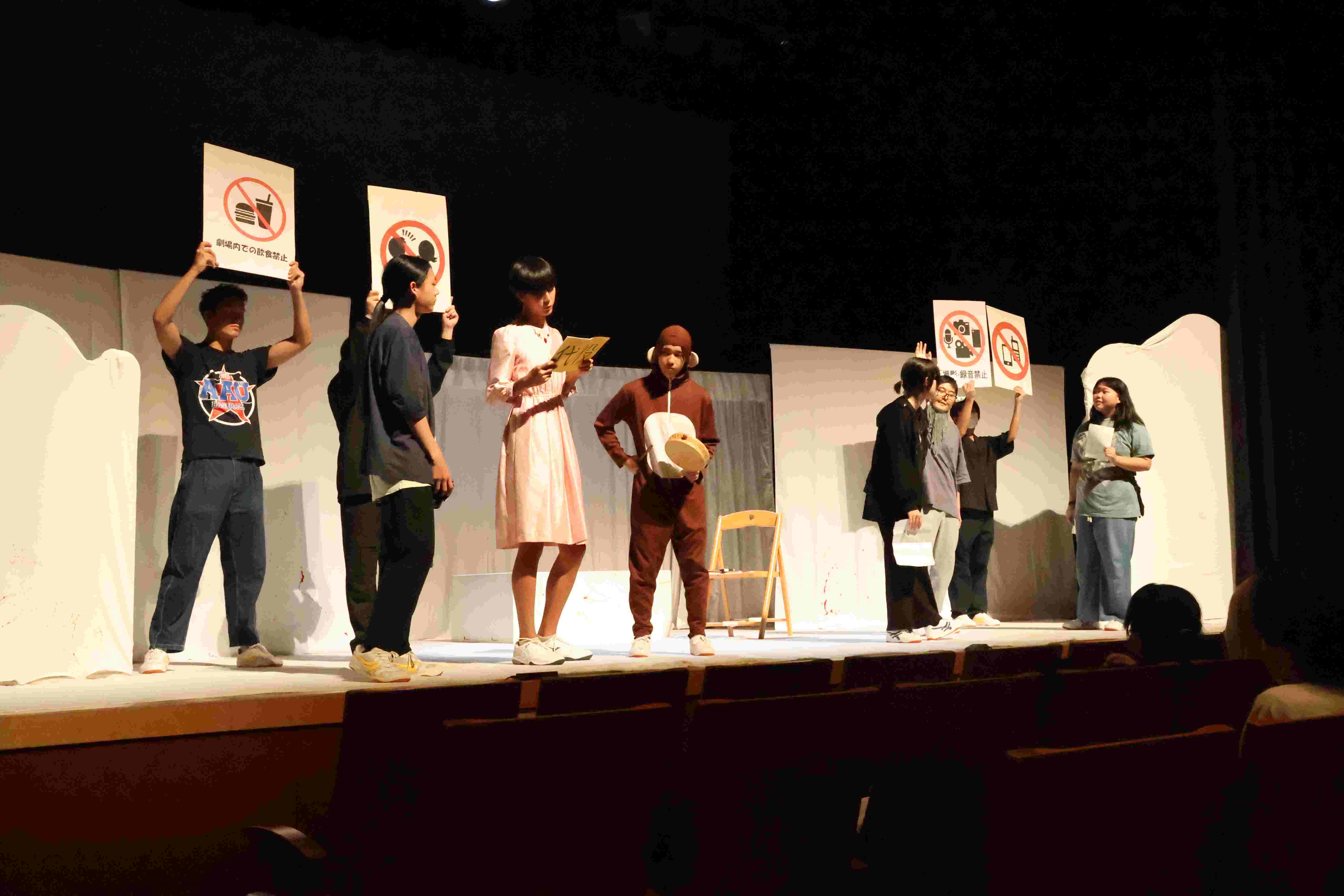 9月12日(金)戸塚区民文化センターさくらプラザホールにて「芸能鑑賞会」が行われました。今年度は劇団「鳥獣戯画」による『「ル プチ プリンス」~星の王子さま~』を鑑賞しました。演劇部による前座劇では劇団「鳥獣戯画」のファンや、演劇初鑑賞のカメラマン、星の王子さまにちなんだ“星の王女”などが登場し、観劇のマナーを楽しく確認しました。劇団「鳥獣戯画」の劇では、大道具や場面転換すらも見せ場とする演出、多彩に使い分けられる声色、影絵の工夫など、2人だけで演じているとは思えない舞台が展開され、物語の世界に引き込まれました。65分の上演はあっという間で、生徒にとって多くの学びを得る機会となりました。保護者等のみなさま、地域のみなさまにも多数ご来場いただきありがとうございました。12月の「演劇祭」に向けての大切な一歩となりました。