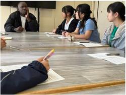 午前中はまず、日本大使館を訪れました。日本文化展示コーナーでは、お寿司や蕎麦などの日本食のサンプルが展示されていたり、日本語を学習できる教材や、英語と日本語で書かれた漫画が書棚に入っており、2週間貸し出しができるようです。テレビでは、日本語のNHK番組も放映されており、日本の文化や言語に親しめる空間になっていました。その後、広報文化センター(JICC)所長の金津様より、大使館の仕事内容と、JICCの取り組みについてお話を伺いました。あまり大使館の取り組みを知らなかった生徒たちは、驚きながら真剣に話に耳を傾けていました。
