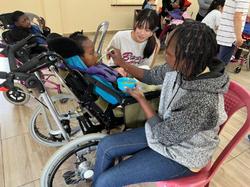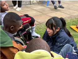 子ども達との触れ合いの時間には、手を握って話しかけたり、車椅子を押して散歩に連れて行ったり、シャボン玉やキャッチボールをしたりしました。そうした交流を重ねるうちに、子ども達の表情も徐々に和らいでいきました。