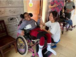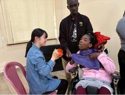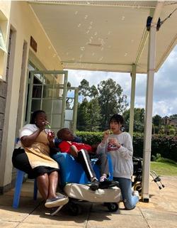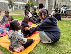 続いて障がい児の支援施設「シロアムの園」を訪問し、代表を務める小児科医の公文和子先生からお話を伺いました。ケニアでは、障がい児への医療、福祉制度、教育の機会が十分に整っていない状況ですが、同施設は、一人ひとりのニーズに合わせた医療と支援、さらに母親の就業支援まで行っています。この施設には、現在54名が通所している一方で、約200名もの待機児童がいるそうです。