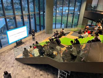 ホテル到着後周辺を探索し、スタジアムシティツアーと講演会でスタジアムシティの今までと今後のお話をお聞きしました。