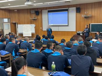 午後は長崎商業高校総合ビジネス科スポーツビジネスコースとの交流会をおこないました。お互いの高校の魅力、地域の魅力を発表しました。その後、体育館でバレーボール、グラウンドでソフトボールの二つに分かれて交流をし、最後にはリレーを行いました。スポーツを通してすぐに打ち解けることができとても充実した交流会となりました。