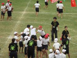 ~名前の由来秘話~ 今年度のネーミング「甘藍の変」どんな意味か分かりますか?実は甘藍(かんらん)とは、キャベツの別名です。キャベツ畑に囲まれた逞しい5・6年生は、下級生や応援してくださった方々へ熱い戦いを見せました。 大将が被っていた兜は児童が自分たちで作成した兜です。