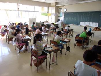 2年生の朝学習で、漢字学習に取り組んでいる様子です。