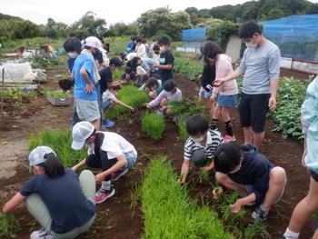 また、7日午後には、5年生が畑で苗取りを行い、田植えに備えました。