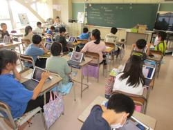2年生は、学年でリレーの練習をしていました。2年生は運動会でリレーを行うので、その第一歩でした。4年国語「秋の楽しみ」では、秋ならではの行事から、それに関連する言葉を書き出していました。一人で調べている子やグループで協力して見つけている子たちなど、自分で学習方法を選び取り組んでいました。5年家庭科「できるよ家庭の仕事」では、夏休みに取り組んだ家庭科の宿題の報告会をしていました。タブレット端末で報告書をそれぞれが確認しながら、話を聞いていました。