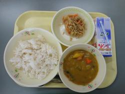 2015年2月24日(火)「けが0プロジェクト」の取組として、12月学校保健委員会で子どもたちが協力して考え出した「貯骨メニュー」(骨を丈夫にする給食の献立)が、先週より3日間に渡って実際に給食として出されました。 1組グループ発案「こつこまチーフカレー」(小松菜、チーズ、大豆が入っています。チーズとビーフでチーフです) 2組グループ発案「野菜たっぷり骨太イタリアンスープ」(トマト味と思いきや、牛乳とチーズでダブル効果。大豆も入っています) 3組グループ発案「聖徳太骨(子)の貯骨マンタンスープ」(小松菜、大豆だけでなくワンタンの具にひじきが入っているところがポイントです) の3種類です。どれも味も大変よく、ネーミングもセンスが光り、子どもたちにも大好評でした。けがを減らす取組から、骨を丈夫にする食生活へと着々と広がっている「けが0プロジェクト」です。今後も、子どもたち自身の発案で、どのような取組が行われていくか楽しみです。 |