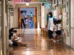 9月9日(水)、朝9時より1年生が心電図検査を行いました。学校図書館のテーブルをベッドにして検査します。1年生は少し緊張した表情で廊下に並んで待っていました。