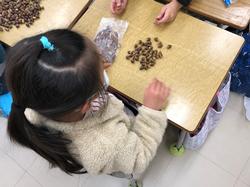 11月9日(月)、午前中、1年生が生活科の秋さがしで大池公園に出かけて「どんぐりの実」を集めていました。その「どんぐりの実」を使って5時間目には算数の学習をしていました。数えやすい並べ方を考えて、どんぐりの実の数を数えていました。