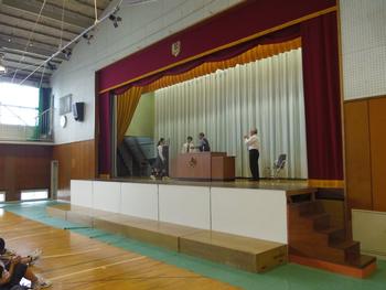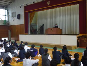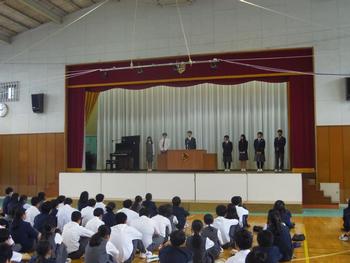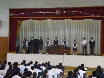 校長先生より前期の生徒の頑張りと後期に向けての応援メッセージと、9年生代表生徒から学年ごとの立場に応じ、後期の目標をもてるように…という話がありました。