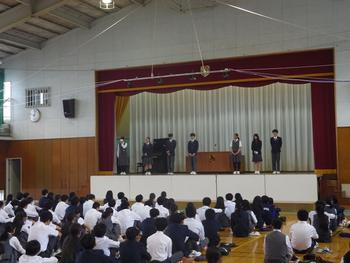 その後、旧生徒会本部の解任式があり、これまで中心となり学校生活を引っ張っていってくれたことへの拍手が送られました。