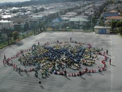 開校時以来、2回目! 全校児童生徒での航空写真撮影を行いました