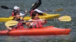 天候に恵まれた1日目、入村式を行った後にカヌー体験を行いました。生徒たちはそれぞれ悪戦苦闘しながらも、風を切って漕いでいました。