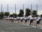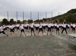 9月7日、体育祭に向けて5年生から9年生の5学年が合同練習を行いました。写真は、全体演技「ソーラン節」の様子です。朝練習や昼練習も始まるなど、体育祭の熱が高まってきている西金沢学園です。