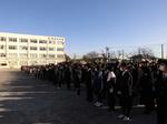 1月9日、校庭にて3学期の始業式を行いました。2学期の終業式は前期課程・後期課程わかれての式でしたが、この日は快晴にも恵まれ、全校児童生徒がそろって校庭で実施することができました。代表児童生徒の言葉では、2年生と8年生から「3学期にむけて」の話がありました。