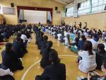 4月16日、5~9年生が合同で生徒会活動・児童会活動の「認証式」を行いました。令和6年度は、小学生と中学生が合同で委員会活動を行う場面を多く設けていきます。毎月の委員会活動は、小中学生一緒の活動からスタートします。