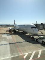 たくさのお土産と思い出をもって、ただいま福岡空港で出発を待っています。この写真の飛行機に乗り、福岡空港の出発は16:00、羽田空港の到着は17:50を予定しています。