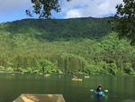 到着後、さっそく行われたカヌー体験では、ペアで協力し、パドルを上手に操作しながら安全に活動しました。その後、箸づくり体験で作った箸で夕飯をいただきました。