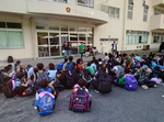 6月25日、4年生が体験学習へ出発しました。梅雨の合間の晴天に恵まれ、予定より早くレインボープラザに到着しました。レインボープラザでは藍染体験をしました。思った通りか、思わぬ幸運か、とても美しい柄に染め上げることができました。