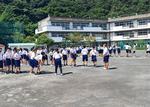 9月2日昼休み、台風一過の青空のもと、体育祭の練習が始まりました。7年生から9年生は分校舎で大縄とびの練習を行いました。声を合わせて、気持ちを合わせて、一生懸命練習に取り組みました。