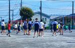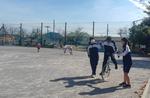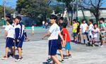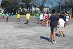 ある日の昼休み、本校舎の校庭では、中学生と小学生が一緒になってドッジボールをしたり、一輪車をしたりして、穏やかに過ごす姿が見られました。