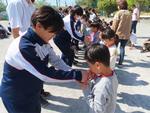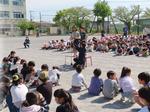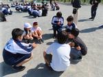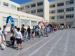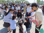4月21日、快晴の空のもと1年生から9年生までの全校生徒がそろって「1年生を迎える会」を開催しました。当日は、登下校の見守りをしてくださっている「学援隊」の方々から挨拶をいただいたあと、全校生徒でゲームをしました。