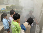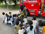 2年生は、起震車で地震の揺れを体験して、頭をおさえるなど身を守る行動を勉強しました。煙体験では煙の方向や火災時の避難のしかたを学び、車両見学では消防車や消防員さんの服に興味津々で、たくさん質問しながら理解を深めていました。こどもたちの防災への意識が高まっている様子が印象的でした。