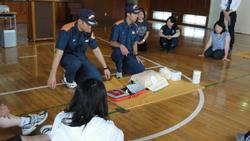 水泳学習が6月24日から始まります。万一のことに備え、中屋敷消防出張所の方をお呼びして、職員が心肺蘇生法研修を行いました。救急救命を確実にできるよう心臓マッサージやAEDの仕方を練習しました。