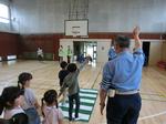 新学期が始まってから3日目となりました。1年生は学校たんけんで廊下の並び方について勉強をしています。また、2年生は体育でからだつくり運動で楽しく体を動かしていました。