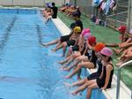 高学年(5,6年生)の水泳学習では、「クロール」や「平泳ぎ」などの泳法を学習します。「背泳ぎ」はその学年の児童の実態に応じて指導に加えることができます。なお、スタートについては、泳ぎにつながる水中からのスタートを指導していきます。1,2年生の「水遊び」、3,4年生の「浮く運動、泳ぐ運動」から段階を踏んで「泳法」へつながっています。本校では「クロール」「平泳ぎ」の泳法別で学習する日や、泳力別に学習する日などを組み合わせています。写真は泳法別に学習する6年生です。